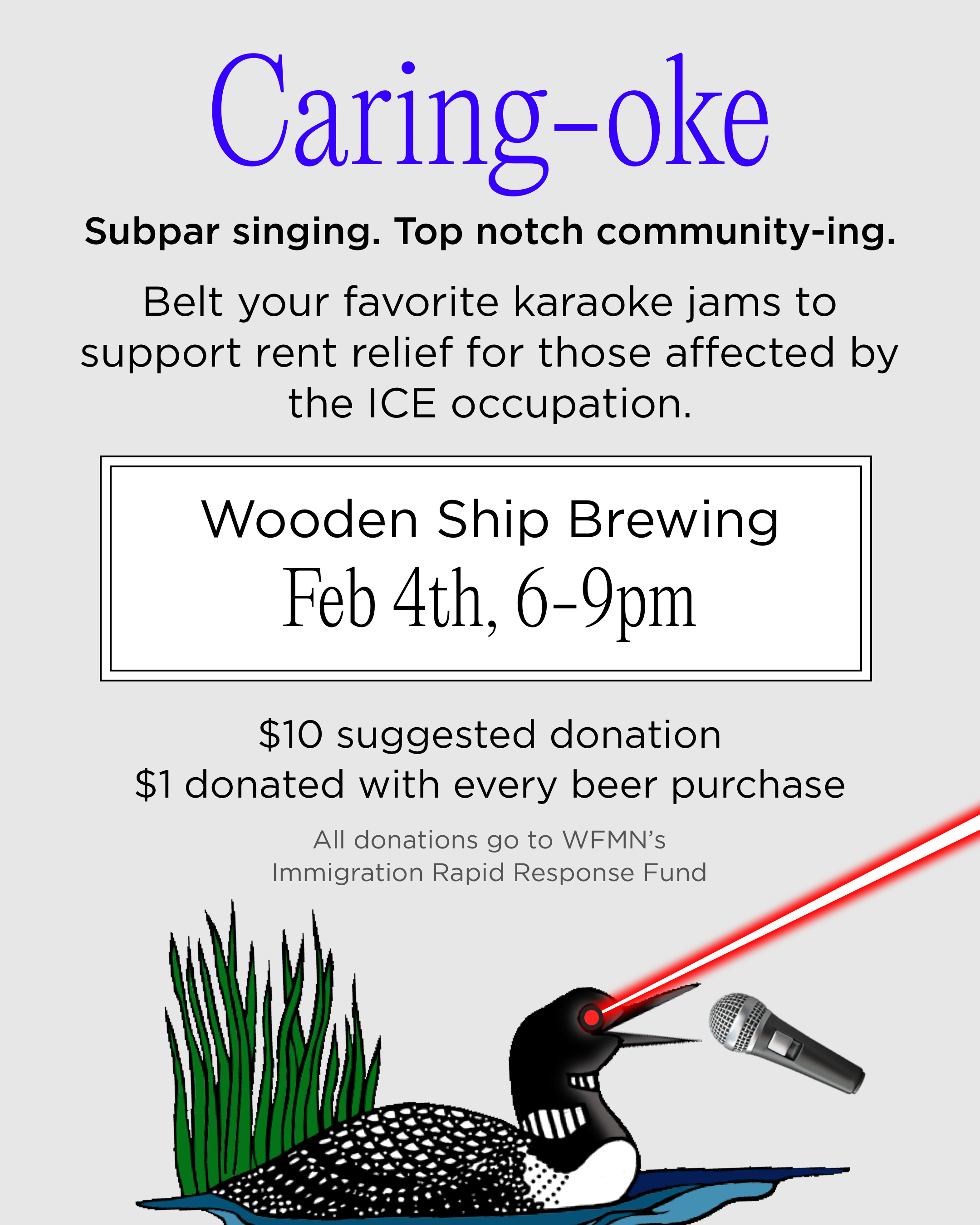 BELT YOUR FAVORITE KARAOKE JAMS TO SUPPORT JAMS TO SUPPORT RENT RELIEF FOR THOSE AFFECTED BY THE ICE OCCUPATION.